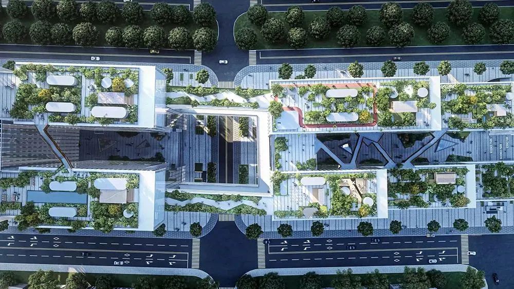項(xiàng)目由國(guó)際頂尖建筑師事務(wù)所領(lǐng)銜設(shè)計(jì),建筑形體由兩組盒子堆疊而成,盒子呈階梯狀向深圳河方向疊落,形成不同高度的屋頂公共空間,以“屋頂上的科學(xué)家”為設(shè)計(jì)理念打造8個(gè)不同主題的屋頂花園,形成新一代人居化科研示范空間。