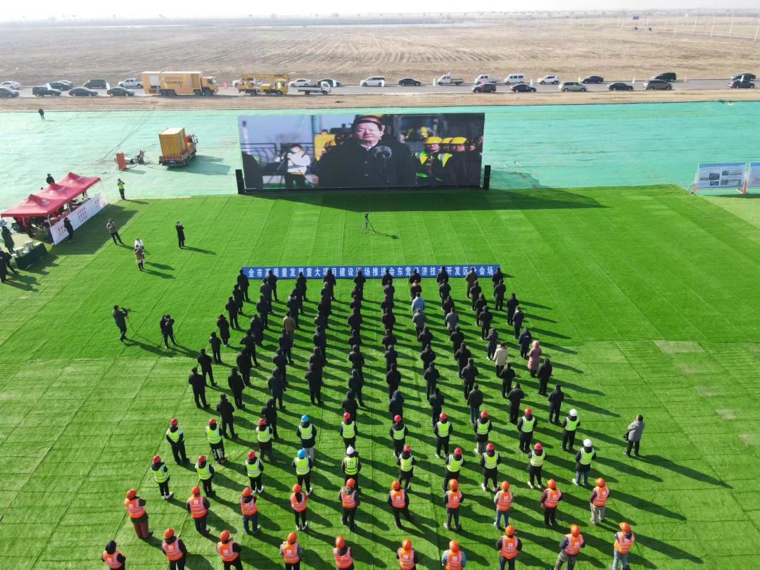 中建八一承建的東營海上風(fēng)電大部件產(chǎn)業(yè)園項目作為東營市經(jīng)濟技術(shù)開發(fā)區(qū)分會場同步開工。東營市副市長邊志偉,東營經(jīng)濟技術(shù)開發(fā)區(qū)黨工委書記、管委會主任康茂禮,黨工委委員、管委會副主任張玉明,墾利區(qū)委常委、政法委書記劉軍及青島公司相關(guān)負責(zé)人參加開工儀式。