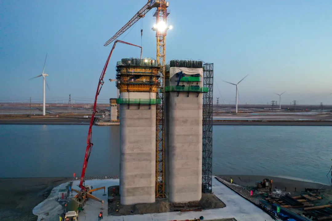 3月1日晚,G228丹東線濱州段項目連續(xù)奮戰(zhàn)8個小時,完成套爾河特大橋首墩最后一節(jié)澆筑,標志著世界第一跨徑梁橋,正式邁入橋梁上部結(jié)構(gòu)施工階段,墩柱高達42.675米,總澆筑量達4381立方米。