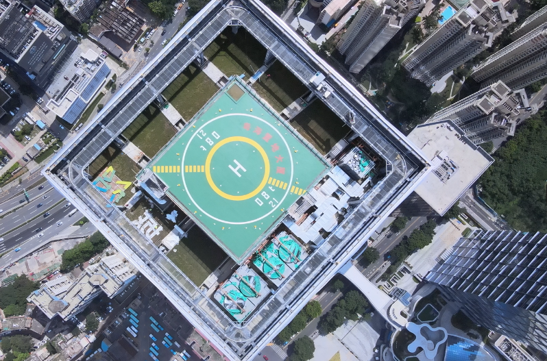 大廈頂部設(shè)置高端停機(jī)坪,為企業(yè)定制專屬航線,滿足消防救災(zāi)、貴賓接送、醫(yī)療救護(hù)、旅游觀光等多方需求。項目整體規(guī)劃設(shè)計突顯山水延伸與融合的理念,對標(biāo)國際綠色建筑標(biāo)準(zhǔn),堅持人與自然和諧相處,榮膺2022年度廣廈獎。