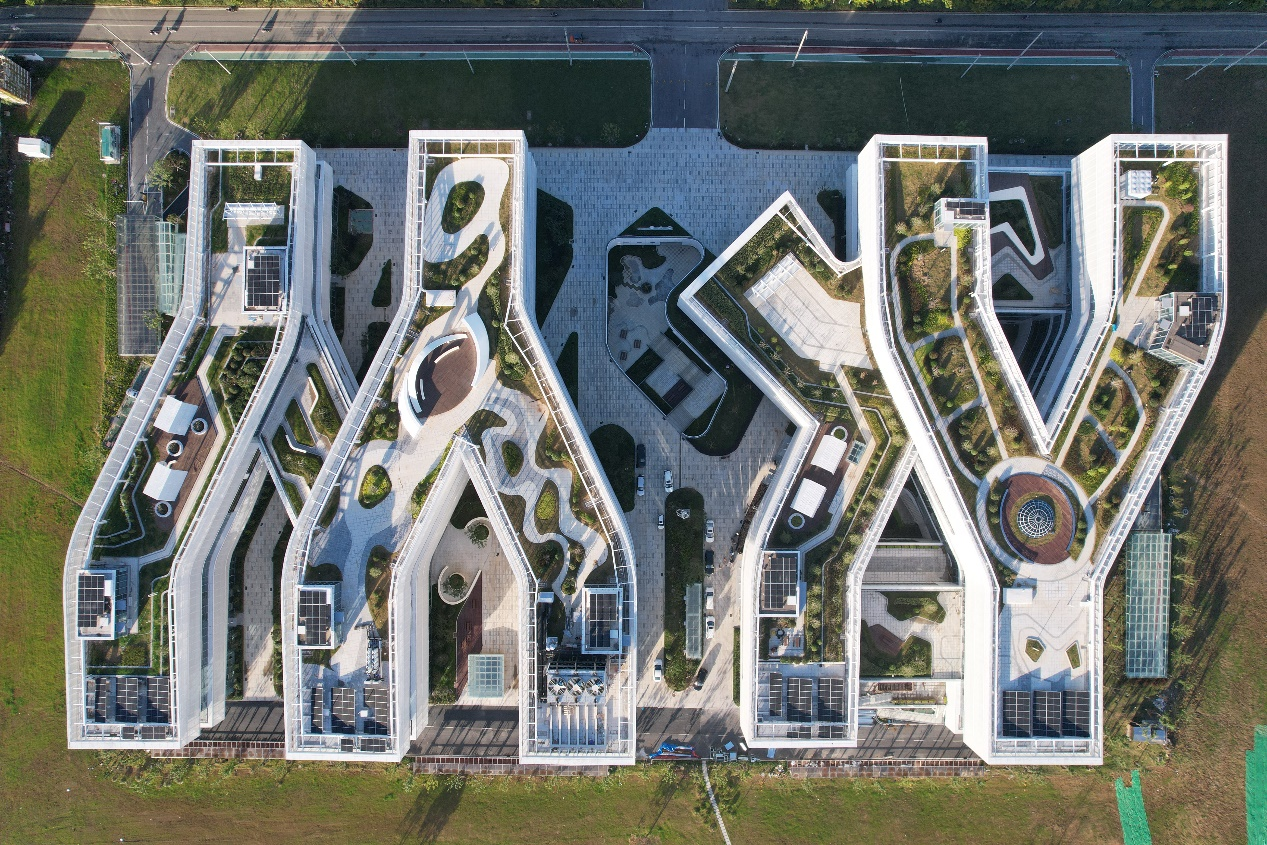 項(xiàng)目位于合肥市長(zhǎng)豐縣,總建筑面積9.5萬(wàn)平方米,建成后將實(shí)現(xiàn)人工智能與農(nóng)學(xué)深度融合,帶動(dòng)一批智慧農(nóng)業(yè)高科技企業(yè)落戶合肥,是合肥市未來(lái)助力鄉(xiāng)村振興、農(nóng)業(yè)提質(zhì)增效的重點(diǎn)工程,為更好滿足科研工作的平臺(tái)協(xié)作需求,項(xiàng)目摒棄傳統(tǒng)陣列式空間布局,堅(jiān)持突出生態(tài)、交互和科研功能,提出“順應(yīng)自然”“多級(jí)聯(lián)通”和“社群聚合”的設(shè)計(jì)策略。采用多層建筑的形式將科研辦公空間平層化,形成多組具有圍合性的小尺度庭院,大幅提高辦公空間利用率的同時(shí),營(yíng)造交流互動(dòng)的辦公環(huán)境,搭建起智能生態(tài)的農(nóng)業(yè)科研空間。