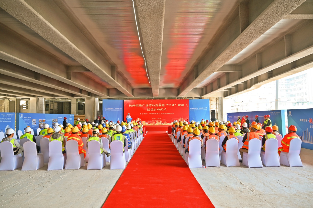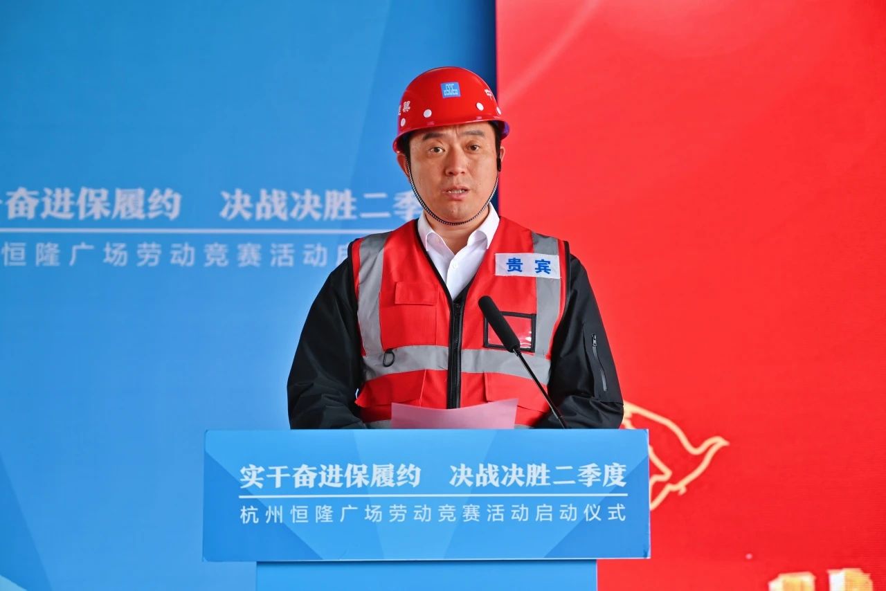 實干奮進(jìn)保履約,決戰(zhàn)決勝二季度。4月10日,位于杭州拱墅區(qū)武林廣場商圈的恒隆廣場項目舉行勞動競賽啟動儀式。恒隆地產(chǎn)有限公司董事唐龍?zhí)?,杭州恒隆房地產(chǎn)有限公司副總經(jīng)理陳永強(qiáng)、江錦正、吳嘉麒、朱家華,中建八局華東分局黨委副書記王鵬,中建八局一公司黨委副書記、總經(jīng)理牛化憲,副總經(jīng)理霍文濤、辛建龍,工程管理部、工會工作部及華東公司相關(guān)負(fù)責(zé)人等共計100余人參加。
