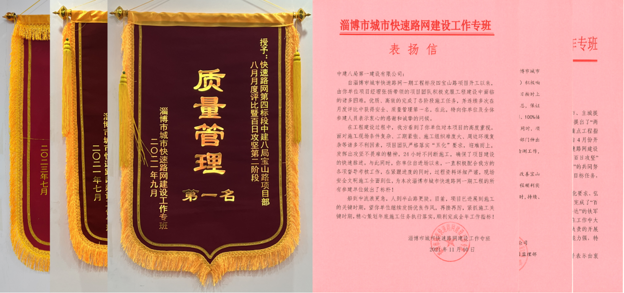 累計迎接中國市政工程協(xié)會等大型觀摩交流50余次,在業(yè)主組織的勞動競賽和表彰大會中獲得安全管理、質(zhì)量管理第一名、“施工突出貢獻(xiàn)單位”等榮譽(yù),累計收獲20余封表揚信和錦旗。