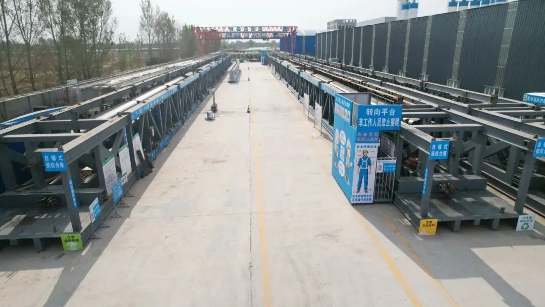 項目在山東省內(nèi)高速公路項目建設(shè)中首次應(yīng)用折線法先張工字梁針,對黃河特大橋北側(cè)堤外引橋592片先張法工字梁施工;項目聯(lián)合山東省交通規(guī)劃設(shè)計院共同打造桁架自錨式整體張拉臺座,一個臺座可同時生產(chǎn)三片梁,具有通用性強、周轉(zhuǎn)率高、地基承載要求低、制梁效率高且質(zhì)量可控等優(yōu)點。