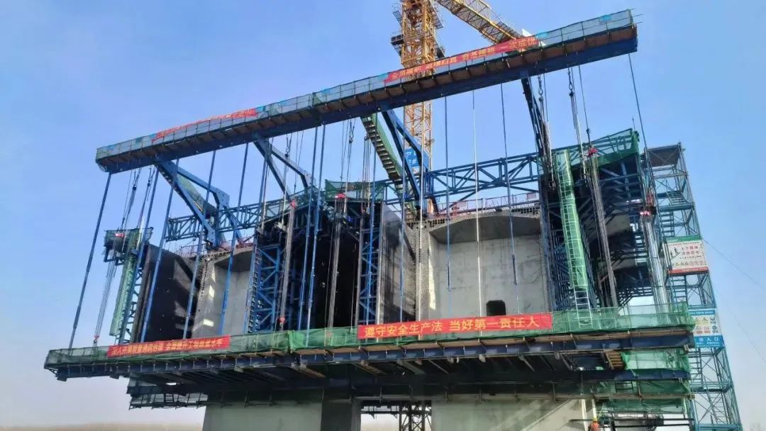 徒駭河特大橋是項(xiàng)目施工的重難點(diǎn),全長(zhǎng)1248.5米,共9聯(lián),單幅橋?qū)?6.5米,主跨長(zhǎng)358.5米,最大跨徑165米,主橋采用單箱單室變截面預(yù)應(yīng)力混凝土連續(xù)梁結(jié)構(gòu)形式,是徒駭河跨徑最大連續(xù)剛構(gòu)現(xiàn)澆梁。