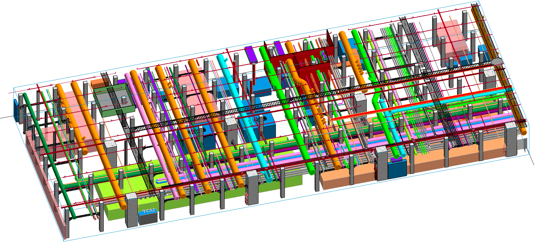 項(xiàng)目拆改交叉作業(yè)復(fù)雜,廠房原有特氣、純水管道與新裝鋼結(jié)構(gòu)存在空間沖突,項(xiàng)目利用BIM技術(shù)提前模擬管線走向,累計(jì)優(yōu)化管道43處標(biāo)高、178處走向,實(shí)現(xiàn)各工序無(wú)縫銜接,保障改建施工一次成優(yōu)。