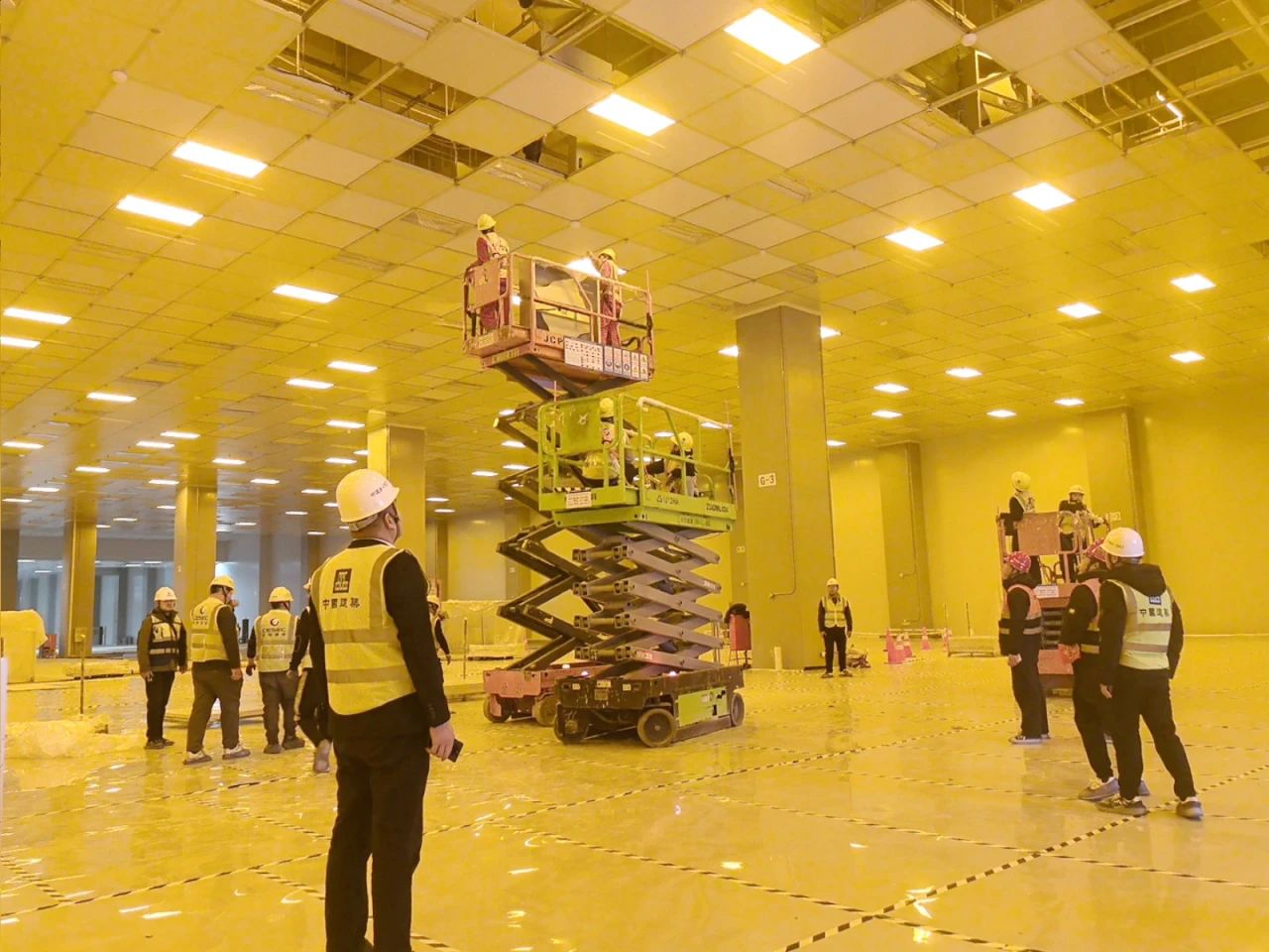 項(xiàng)目存在大量高空作業(yè),現(xiàn)場(chǎng)同時(shí)應(yīng)用近200臺(tái)登高車,高空作業(yè)安全管控難度較高,項(xiàng)目配置20名安全員全天候巡查,嚴(yán)格落實(shí)佩戴雙掛鉤安全帶,增設(shè)生命繩、鋪設(shè)PE防滑墊等舉措,為現(xiàn)場(chǎng)作業(yè)安全保駕護(hù)航。