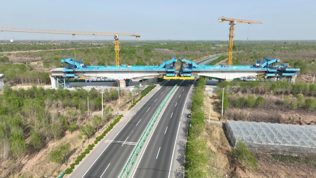 中建八一津?yàn)H高鐵海興特大橋架梁通道貫通