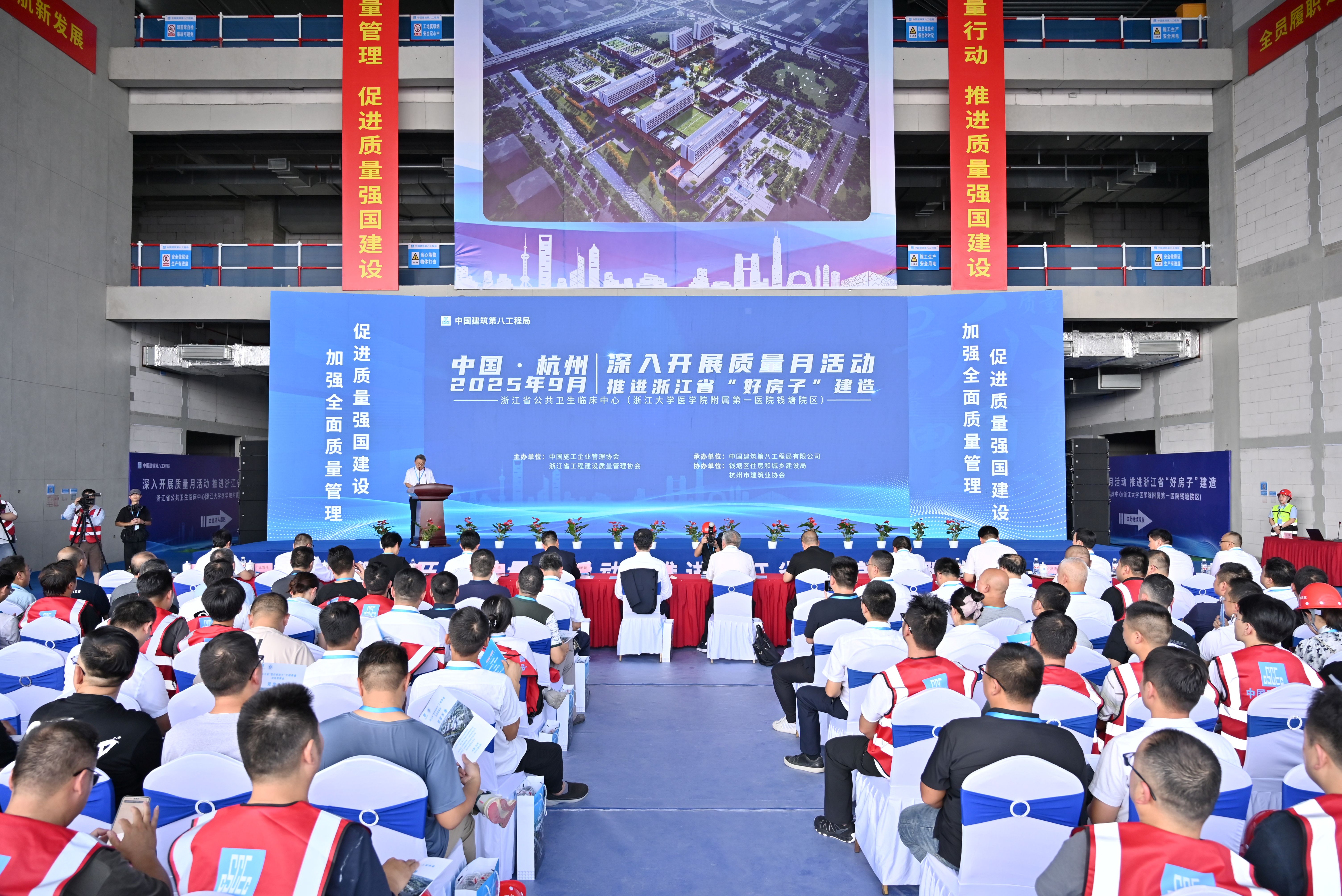 9月16日,浙江省醫(yī)療好房子”工程質(zhì)量現(xiàn)場觀摩會在中建八局一公司浙江大學(xué)醫(yī)學(xué)院附屬第一醫(yī)院錢塘院區(qū)項目舉行。活動由中國施工企業(yè)管理協(xié)會、浙江省工程建設(shè)質(zhì)量管理協(xié)會主辦,中建八局承辦,錢塘區(qū)住房和城鄉(xiāng)建設(shè)局、杭州市建筑業(yè)協(xié)會協(xié)辦。浙江省住房和城鄉(xiāng)建設(shè)廳、浙大一醫(yī)院、中建八局、杭州市建筑業(yè)協(xié)會、錢塘區(qū)衛(wèi)健局等相關(guān)負責人,浙江省各地市行業(yè)主管部門、行業(yè)協(xié)會、企業(yè)代表等共400余人參加。