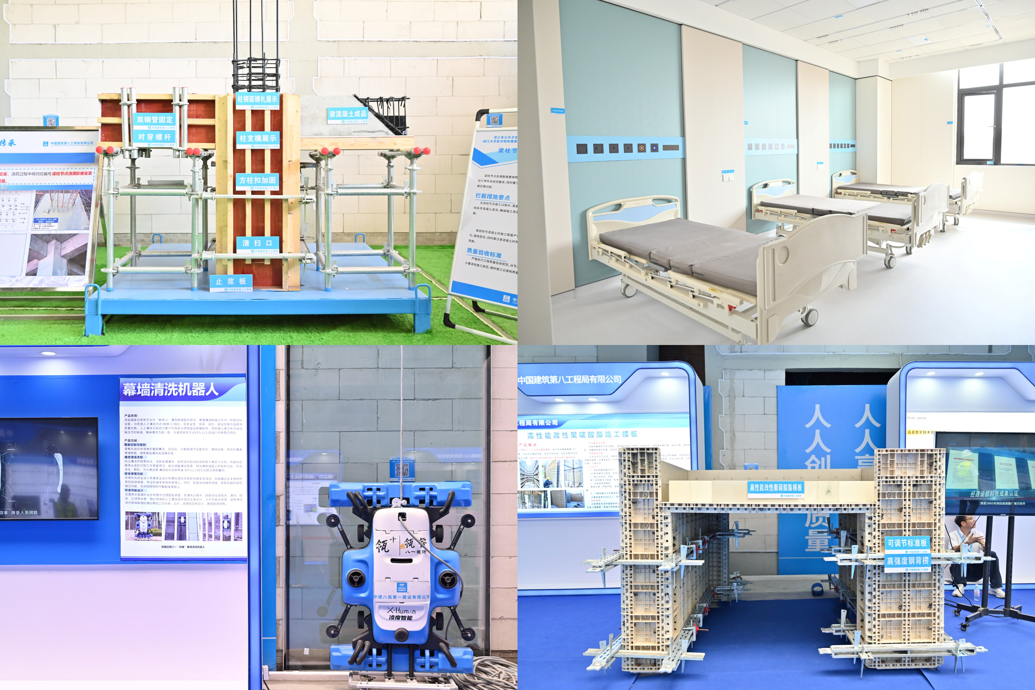 現(xiàn)場設(shè)“醫(yī)療好房子、質(zhì)量工藝樣板、質(zhì)量實體樣板、智慧工地”四大展區(qū),由具身智能機器人擔任講解員,展示中建八局在醫(yī)療建筑質(zhì)量管控與科技創(chuàng)新的成果?!搬t(yī)療好房子”展區(qū)聚焦“韌性醫(yī)療、院城融合、高效模塊、人文醫(yī)院、綠色低碳”五大核心,展示國際化三級甲等綜合性醫(yī)院與省級公共衛(wèi)生臨床中心一體化運營新模式,以“平急兩用”雙軸并行框架,通過多舉措打造多功能醫(yī)療空間,滿足日常救治與應(yīng)急保障需求。質(zhì)量工藝樣板展區(qū)集中展示樁基礎(chǔ)、頂板后澆帶等關(guān)鍵工序樣板,明確全周期質(zhì)量管控標準;質(zhì)量實體樣板展區(qū)依托實體結(jié)構(gòu),展示主體結(jié)構(gòu)、設(shè)備安裝裝飾裝修等成型質(zhì)量。智慧工地展區(qū)呈現(xiàn)剪叉車安全平臺、智能施工升降機、無人塔吊模型、各類機器人等智能裝備,以科技創(chuàng)新注入“新質(zhì)生產(chǎn)力”。