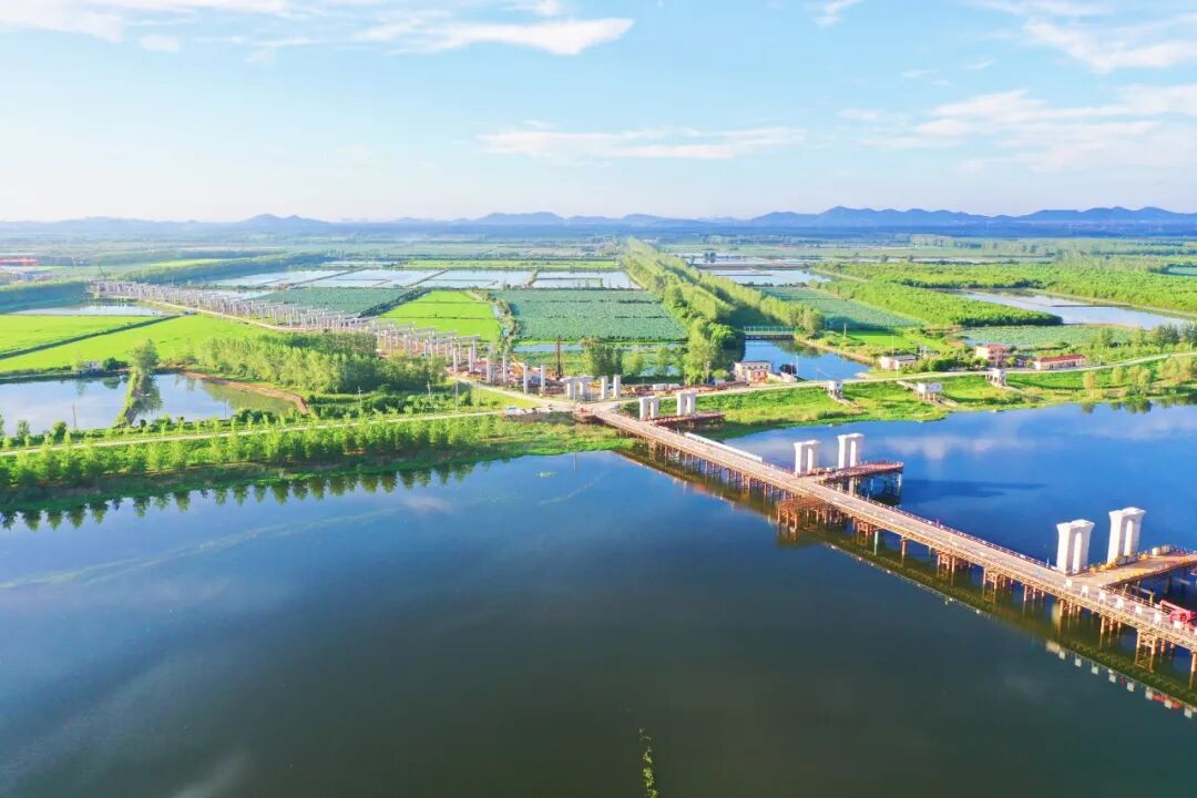 為破解濕地施工難題,項(xiàng)目依托博士工作站創(chuàng)新 “深厚軟土層地基膜袋吹砂處理方法”,在淺水與軟土上鋪設(shè) 6 公里寬 7 米的 “沙袋” 路,鋪 50 厘米以上石渣滿足雙車(chē)通行需求,無(wú)需排水清淤且無(wú)破壞性工序,最大限度降低環(huán)境影響;針對(duì)深水區(qū)域,項(xiàng)目搭建 2 千余米裝配式鋼棧橋作為施工便道,無(wú)需混凝土澆筑,可快速拼裝拆除并回收再利用,避免地表永久性破壞。
