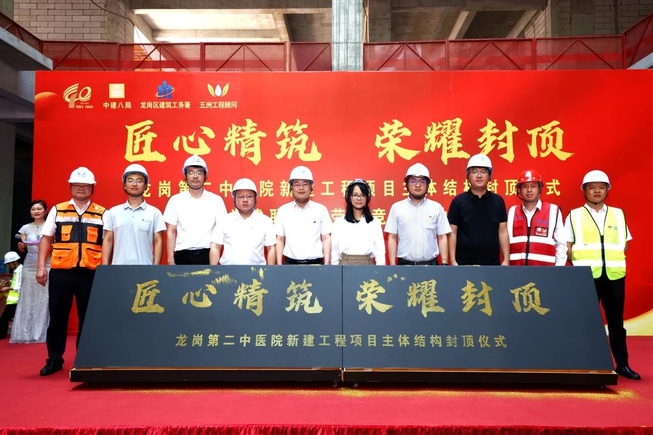 7月10日,中建八局承建的龍崗區(qū)第二中醫(yī)院新建工程項(xiàng)目舉辦主體結(jié)構(gòu)封頂暨黨建聯(lián)建、勞動(dòng)競(jìng)賽表彰儀式。 深圳市龍崗區(qū)衛(wèi)生健康局、區(qū)建筑工務(wù)署、五洲工程顧問集團(tuán)有限公司華南公司、中建八局一公司華南公司相關(guān)負(fù)責(zé)人參加儀式。