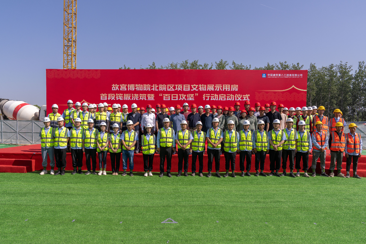 為激發(fā)建設(shè)者勞動(dòng)熱情,聚力攻堅(jiān)下一階段目標(biāo)任務(wù),5月17日,中建八局承建的故宮博物院北院區(qū)項(xiàng)目舉行首段筏板澆筑暨“百日攻堅(jiān)”行動(dòng)啟動(dòng)儀式,標(biāo)志著文物展示用房全面進(jìn)入主體結(jié)構(gòu)施工階段。