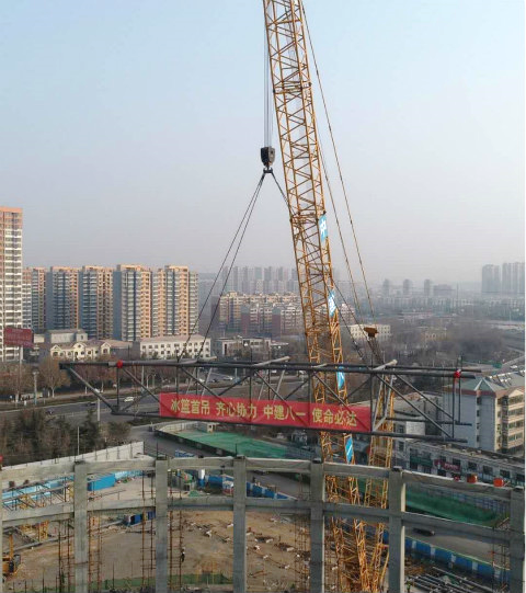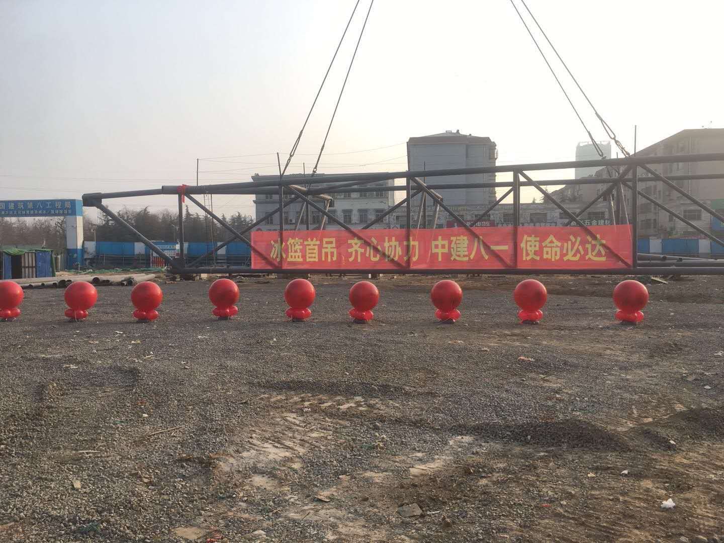 公司承建萬達(dá)冰籃球館項目順利完成新年“第一吊”