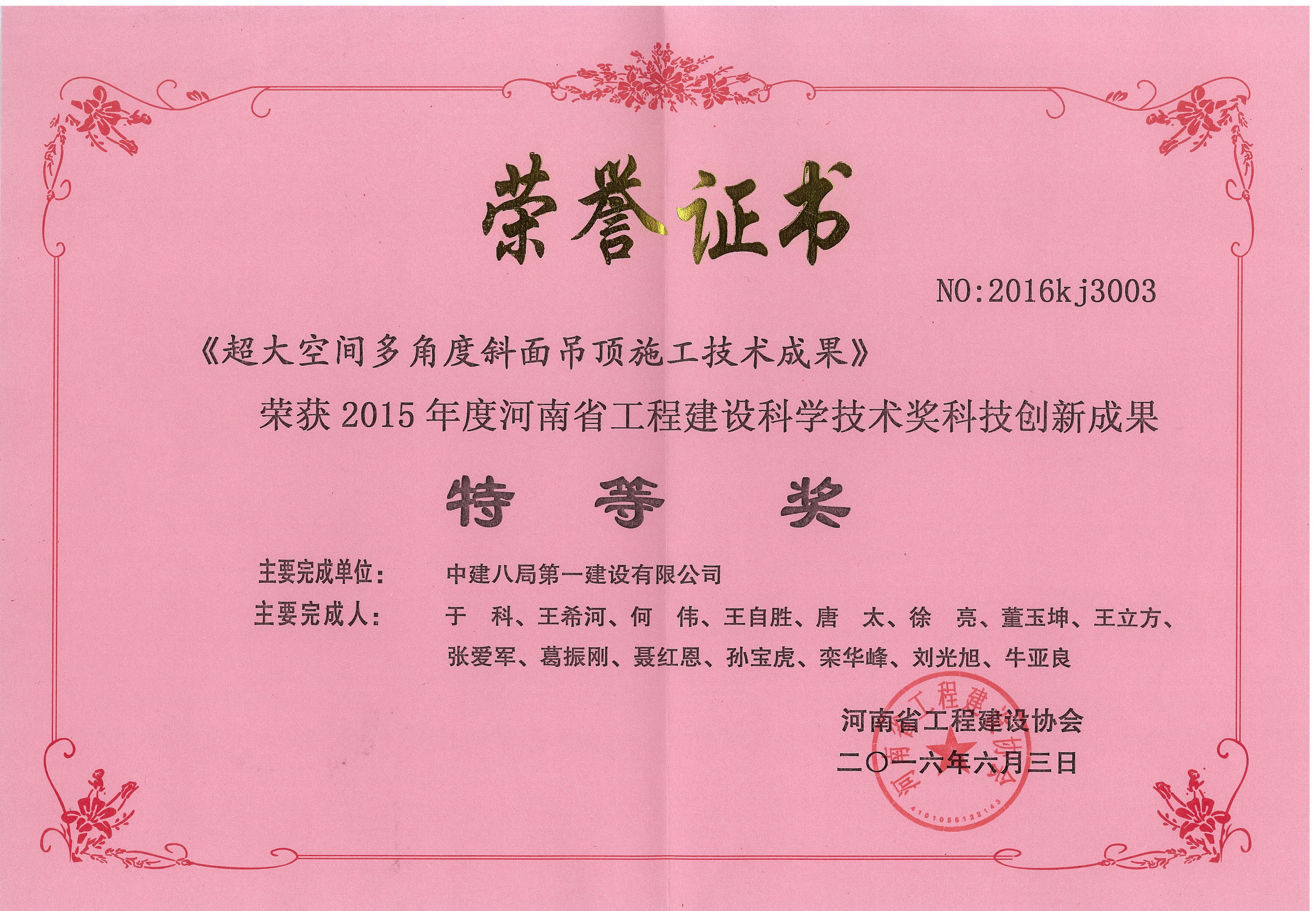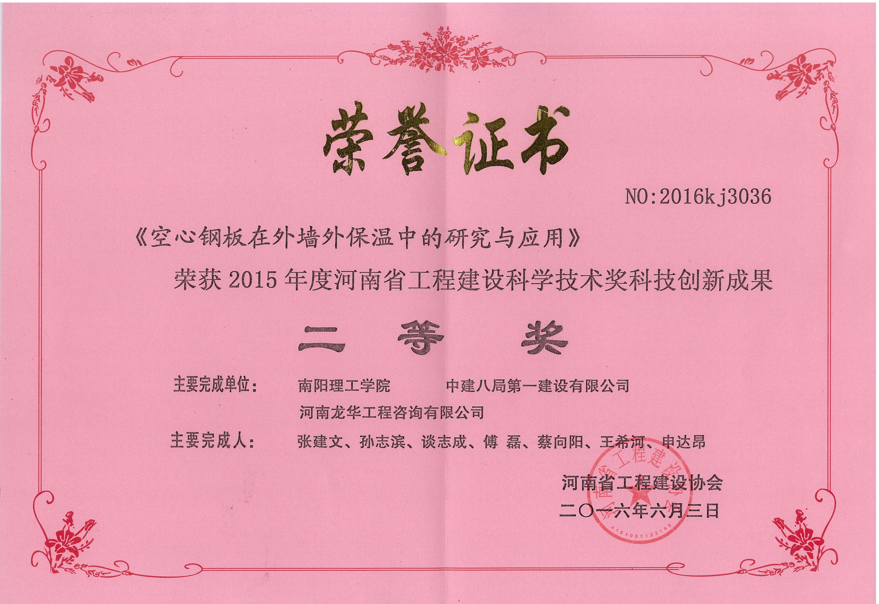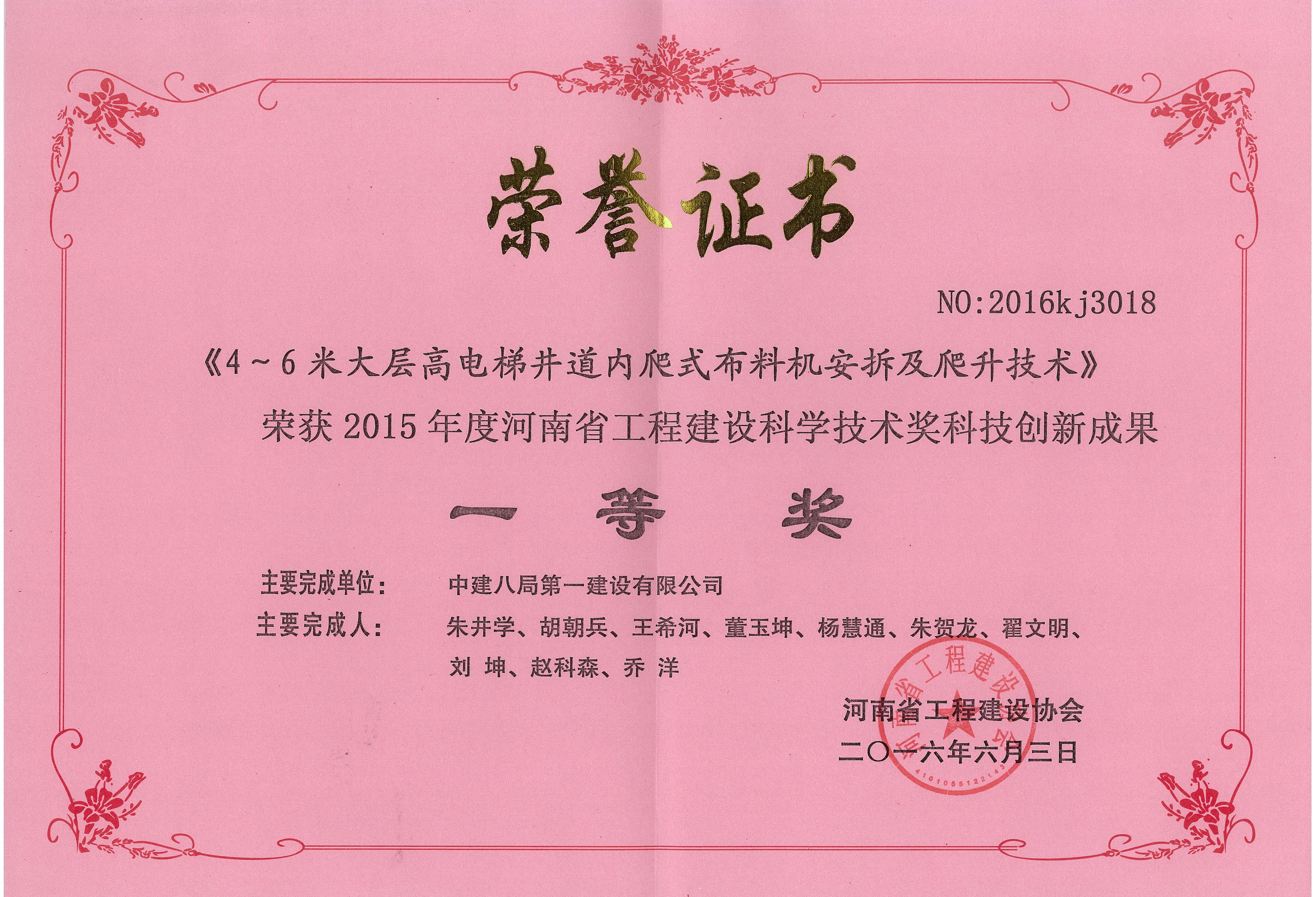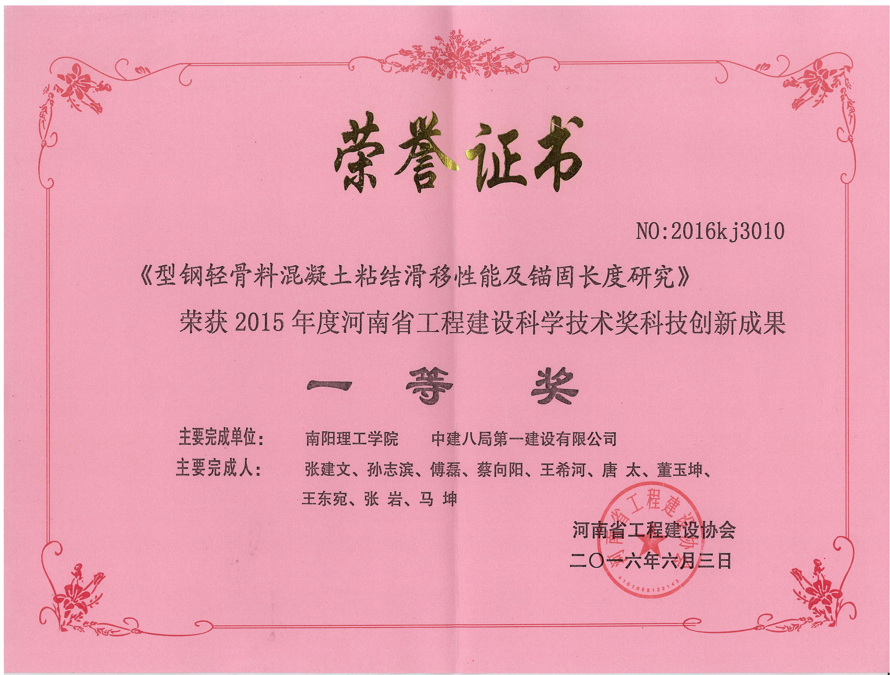 公司榮獲2015年度河南省工程建設(shè)科學(xué)技術(shù)獎4項