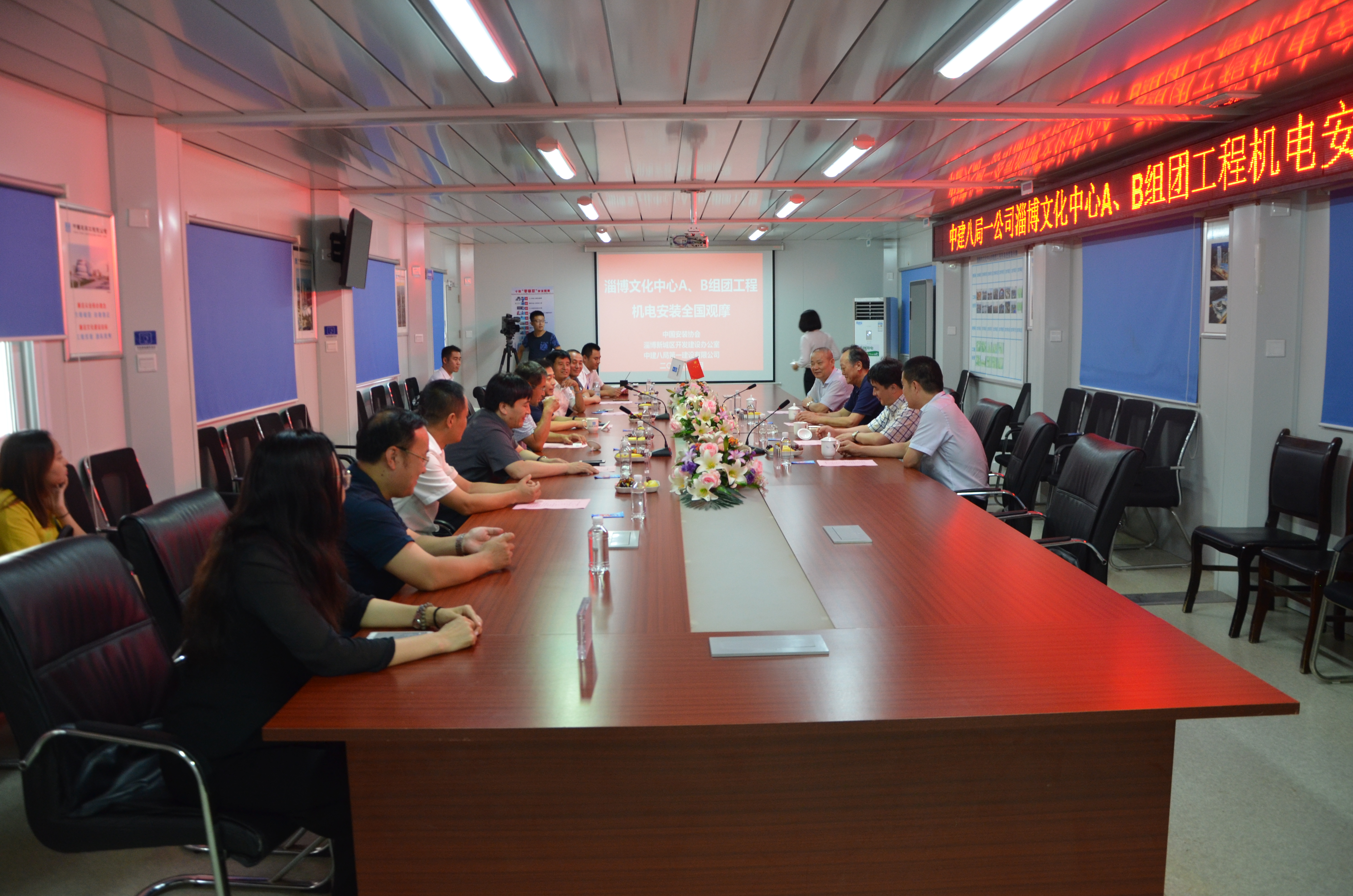 觀摩前,參加觀摩的協(xié)會、政府領(lǐng)導(dǎo)與公司相關(guān)人員在項目會議室舉行了座談。座談會上,田秀增表示,長期以來八一安裝的科技創(chuàng)新始終走在行業(yè)前列,不斷鑄造精品工程,為業(yè)主創(chuàng)造價值,安裝行業(yè)為有這樣的隊伍能贏得業(yè)主的長期信賴,深感欣慰與興奮。杜春雷回顧了與公司合作的歷史,充分肯定了公司“令行禁止、使命必達(dá)”的鐵軍精神,并表示愿意與公司加強(qiáng)合作,希望公司在淄博未來的建設(shè)中繼續(xù)奉獻(xiàn)力量。