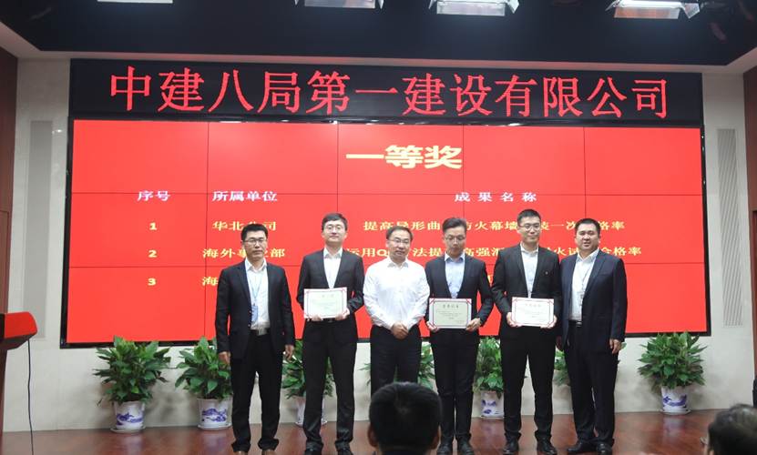 經(jīng)過2天激烈角逐,在QC小組活動中,最終華北公司麗澤SOHO追求卓越QC小組的《提高異形曲面防火幕墻安裝一次合格率》、海外事業(yè)部夢想?起航QC小組的《運用QC方法提高高強混凝土耐火試驗合格率》、海外事業(yè)部印尼一號航夢海外QC小組的《超深基坑逆作施工快速取土技術(shù)創(chuàng)新》3項成果獲得一等獎。