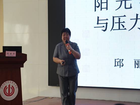25日上午,由山東省委黨校教授邱麗莉教授為學員進行為期半天的《陽光心態(tài)》授課。邱教授授課幽默而生動,結(jié)合時事新聞向大家闡述了保持陽光心態(tài)的重要性,并且傳授了多種疏解壓力的方法。