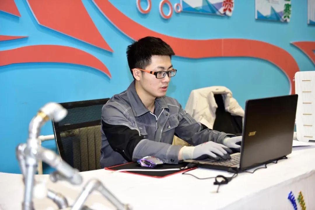 在比賽的“冷熱水模塊”,因材料原因?qū)е露嗵幊叽珏e(cuò)誤,面對(duì)突發(fā)狀況,他憑借扎實(shí)的專業(yè)基礎(chǔ),迅速調(diào)整管卡位置、糾正誤差,最終一舉奪得金牌。