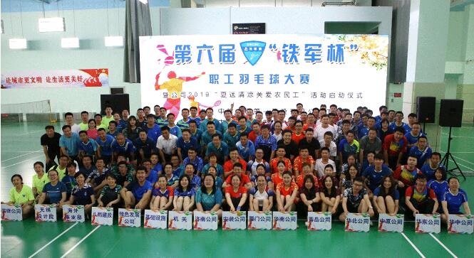 • 2019-06-17 公司成功舉辦第六屆“鐵軍杯”職工羽毛球大賽暨2019年“夏送清涼關愛農民工”啟動儀式活動 6月14日-16日,公司在濟南舉辦第六屆“鐵軍杯”職工羽毛球大賽暨2019年“夏送清涼關愛農民工”活動,濟南市總工會副主席蒲玉全,公司副總經理寧文忠,黨委副書記、工會主席李云,工會工作部負責人方健及各單位領隊、運動員、農民工代表及志愿者近240人參加了開閉幕式。