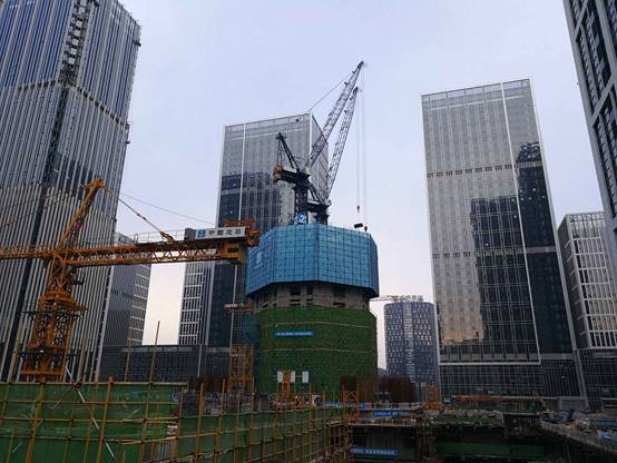 漢峪金融商務(wù)中心A5-3#樓及附屬設(shè)施工程地處濟(jì)南市高新區(qū),是集辦公、酒店、商業(yè)于一體的超高層建筑,建成后將成為濟(jì)南市標(biāo)志性建筑。該項(xiàng)目由1棟塔樓和1棟附樓組成,總建筑面積253854.32平方米,建筑高度約339m,地上69層。工程屬于超高層建筑,同時(shí)現(xiàn)場(chǎng)場(chǎng)地狹小、環(huán)境復(fù)雜、工期緊、質(zhì)量要求高,施工難度大。