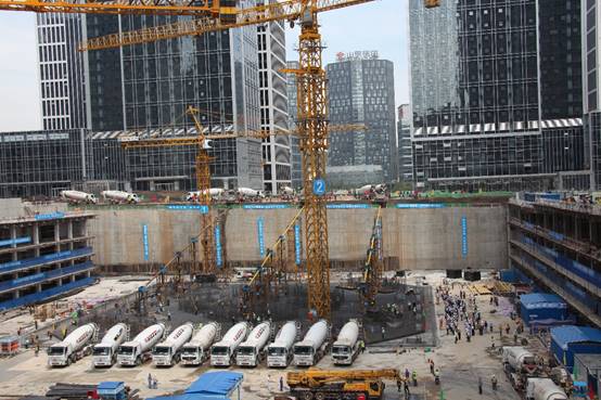 項(xiàng)目自主研發(fā)的免泵送大體積混凝土溜管施工技術(shù)解決了現(xiàn)場(chǎng)狹窄、筏板混凝土澆筑體量大等問題,該技術(shù)實(shí)施過程瞬時(shí)速度達(dá)5分鐘320立方米,創(chuàng)全國(guó)第一,平均速度20小時(shí)11000立方米,創(chuàng)山東第一。該項(xiàng)技術(shù)獲得山東省優(yōu)秀工法、中建八局QC成果一等獎(jiǎng),經(jīng)鑒定達(dá)到了國(guó)際先進(jìn)水平。