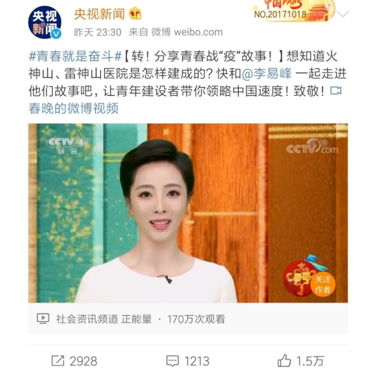 公司雷神山突擊隊(duì)亮相央視“五四”特別節(jié)目